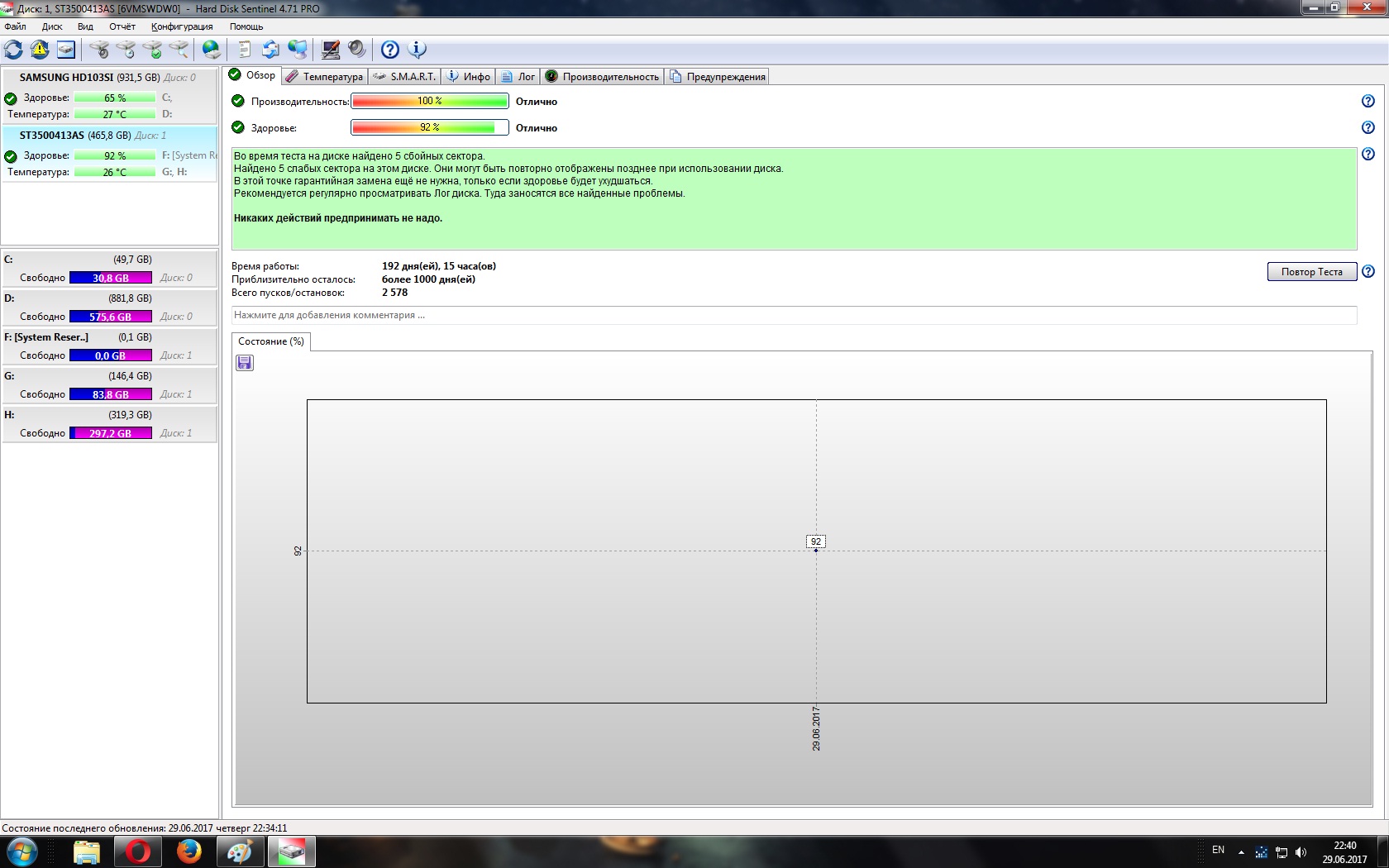 Hard Disk Sentinel Pro ეხლა ესე მიჩვენა ფორმატირების შემდეგ