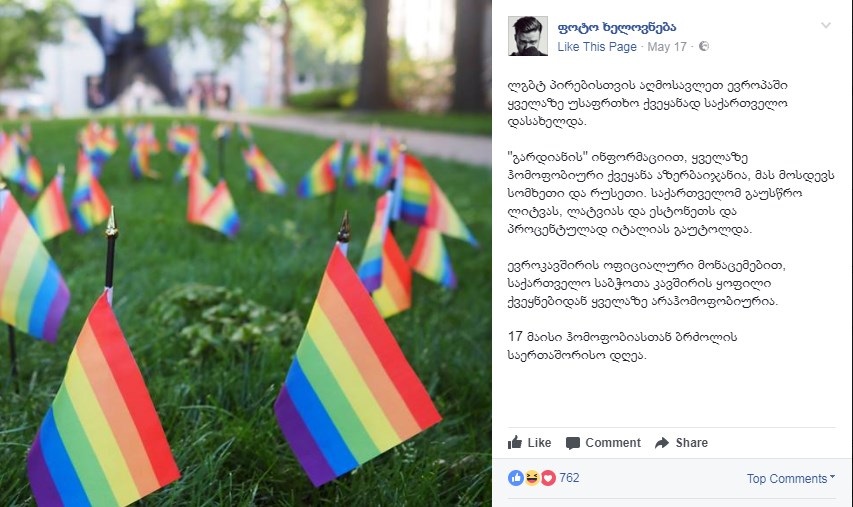 ლგბტ პირებისთვის ყველაზე უსაფრთხო, ქვეყანად საქართველო დასახელდა
