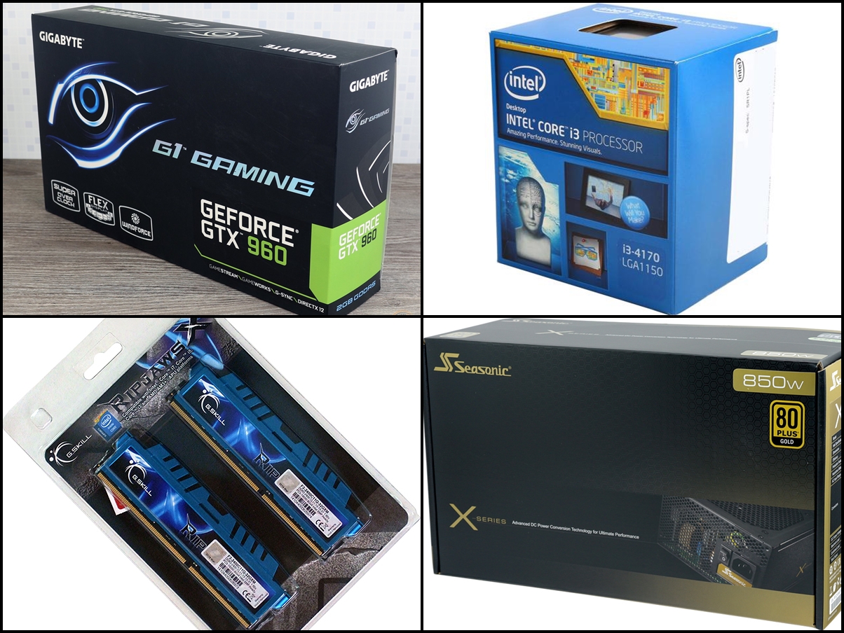 I3 4170, gtx 960 g1 gaming, mouse bloody v7 ის, g skill ripjaws x ის ყუთს და seasonic x850 ის ყუთს. ნუ დიდი იმედი არ მაქ მარა მაინც ეგება ვიღაცამ გაიღოს სიკეთე. ზოგს ალბათ კითხვა გაგიჩნდათ რადმინდა ყუთები