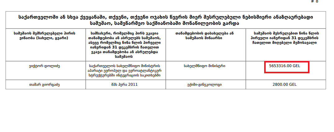 ყველაზე უთავმოყვარეო და ამაზრზენი, სახელმწიფო მოხელე -> ვიქტორ დოლიძე