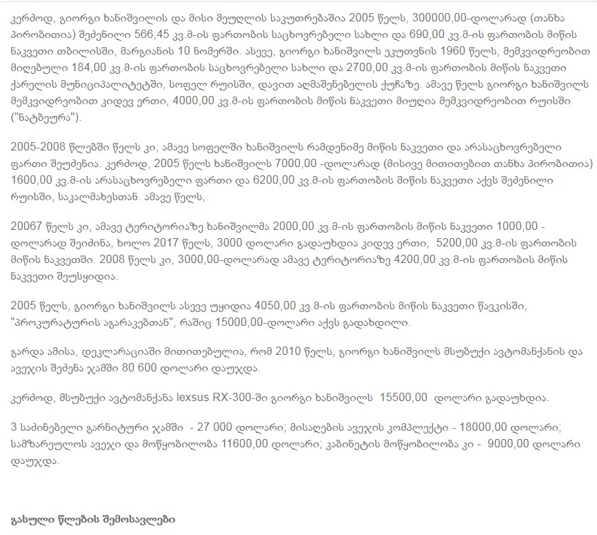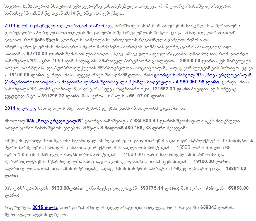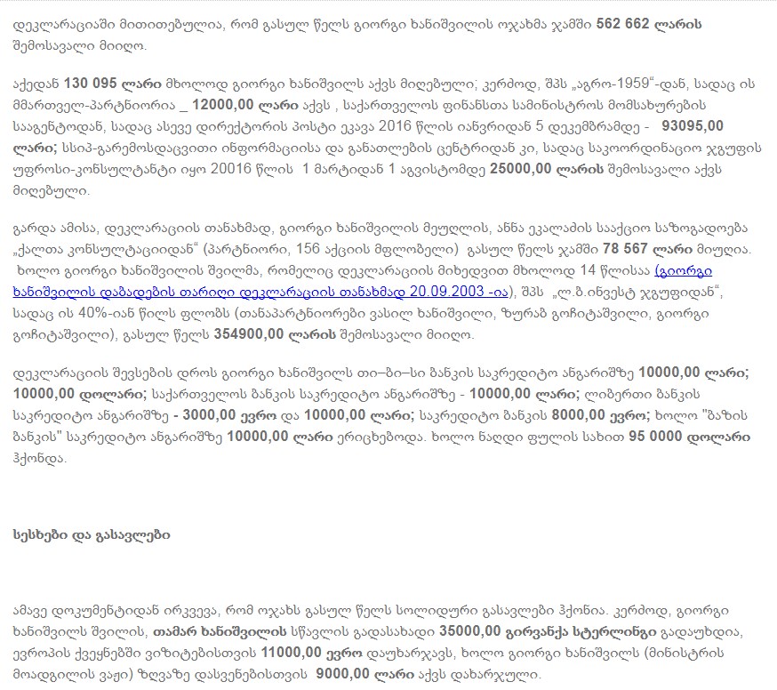 15 მილიონ 348 097 ლარი - მინისტრის მოადგილის, შემოსავალი 4 წელიწადში