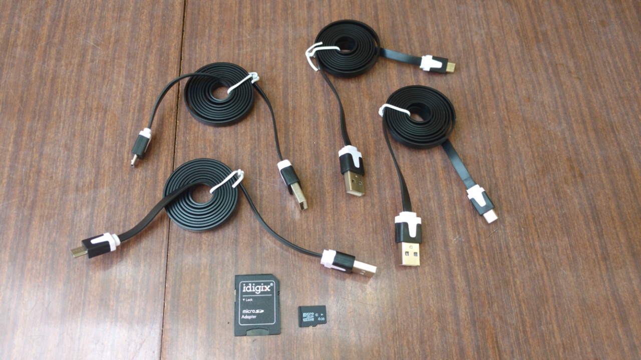 არის 4 ცალი ანდროიდის სულ ახალი იუესბი კაბელები + 4გბ მეხსიერების ბარათი თავის ადაპტერით...