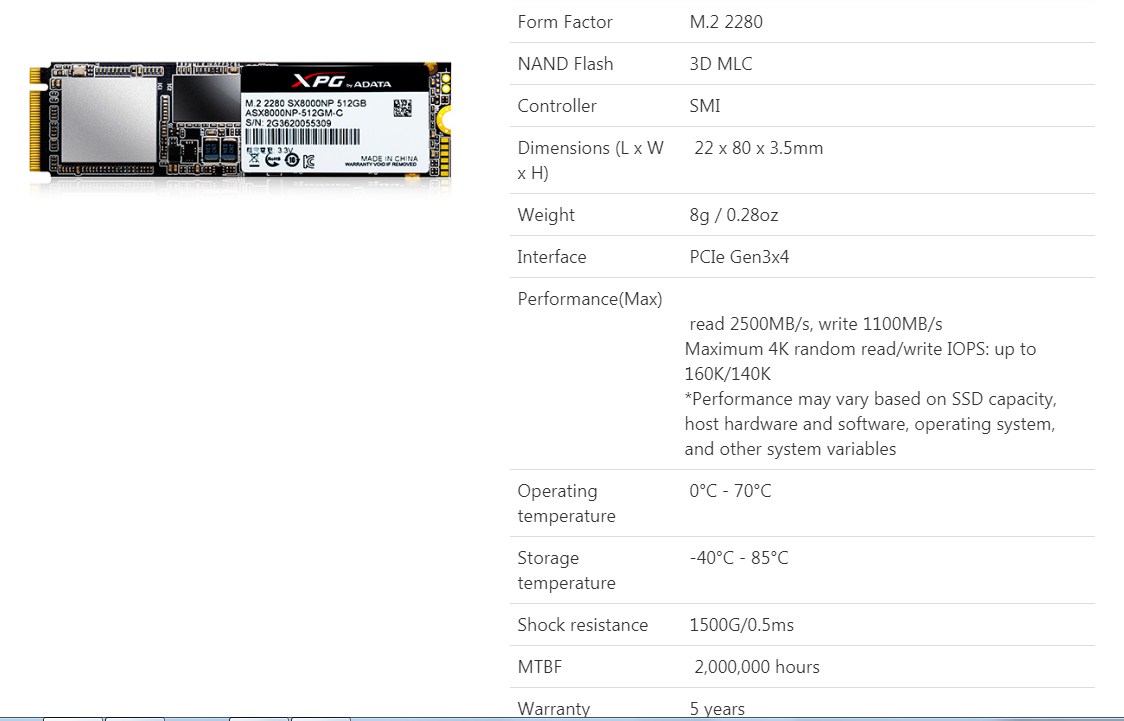 მე მაქვს სამსუნგის SM951 (იგივე 950 Pro OEM) რომელსაც 2250MB/sec წაკითხვის და 1300MB/sec ჩაწერის სიჩქარე აქვს, სასწაულად სწრაფია!!!