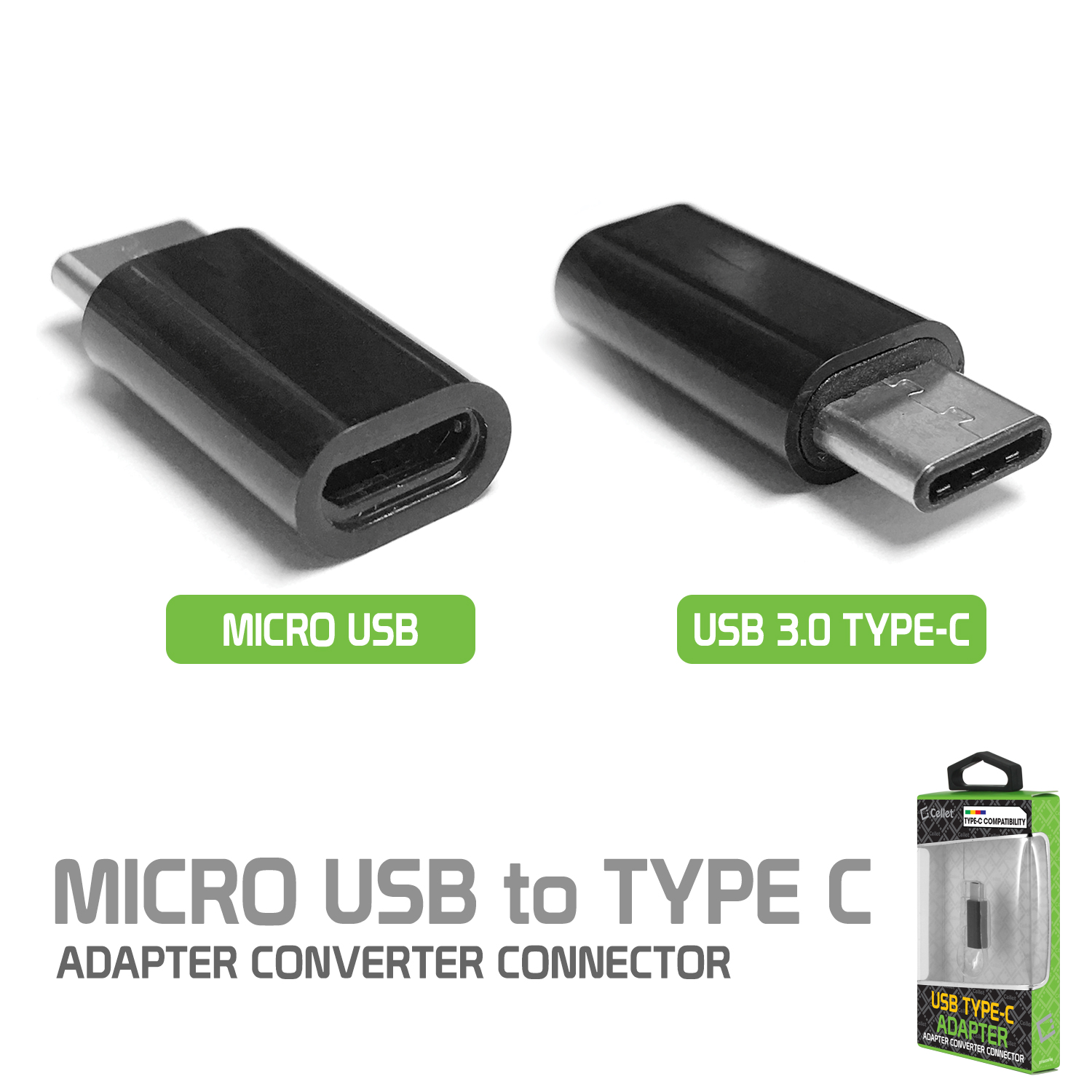 Micro USB კაბელი Type-C გადამყვანთან ერთად