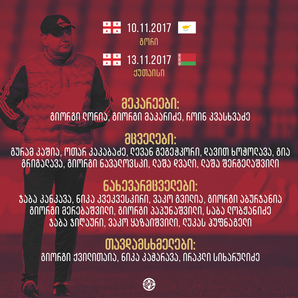 10,13 ნოემბერი - ამხანაგური მატჩები, საქართველო - კვიპროსი, საქართველო - ბელარუსი