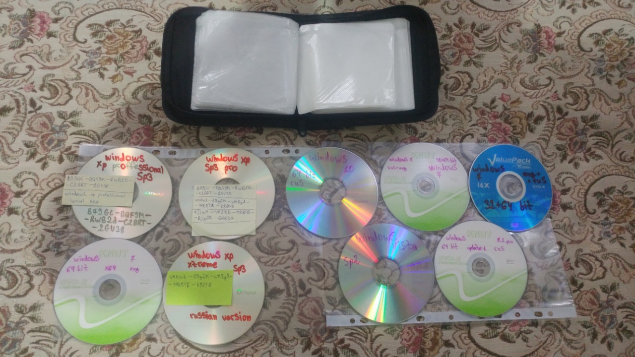 სურათზე რასაც ხედავთ ესენია..ვიყენებდი სახლში მისვლით როცა მიწევდა მუშაობა..შესაბამისად ყველა ვინდოუსის დისკი დატესტილია და მუშა..თავის დისკების ჩანთით...