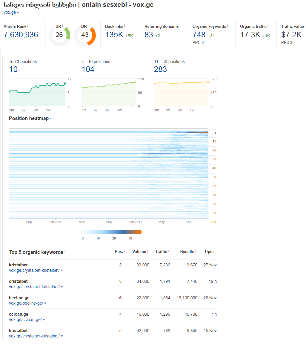 როდესაც ყურადღება ექცეოდა და სასესხო ქივორდები წინ იყო 900 ევროც დაუწერია. შემდეგ ყურადღება დააკლდა ჩვენი მხრიდან სესხებზე ვითარების შეცვლის გამო. თუმცა ეხლა ისევ გამოსწორდა ეგ ვითარება. ამიტომ ძალიან დიდი პერსპექტივააქ. ეხლა 100 ევრომდე ადის შემოსავალი. თუმცა ცალკეული გვერდები არ არის მონეტიზებული, ბლოგის რამოდენიმე ფეიჯი კარგ ტრაფიკიანია.