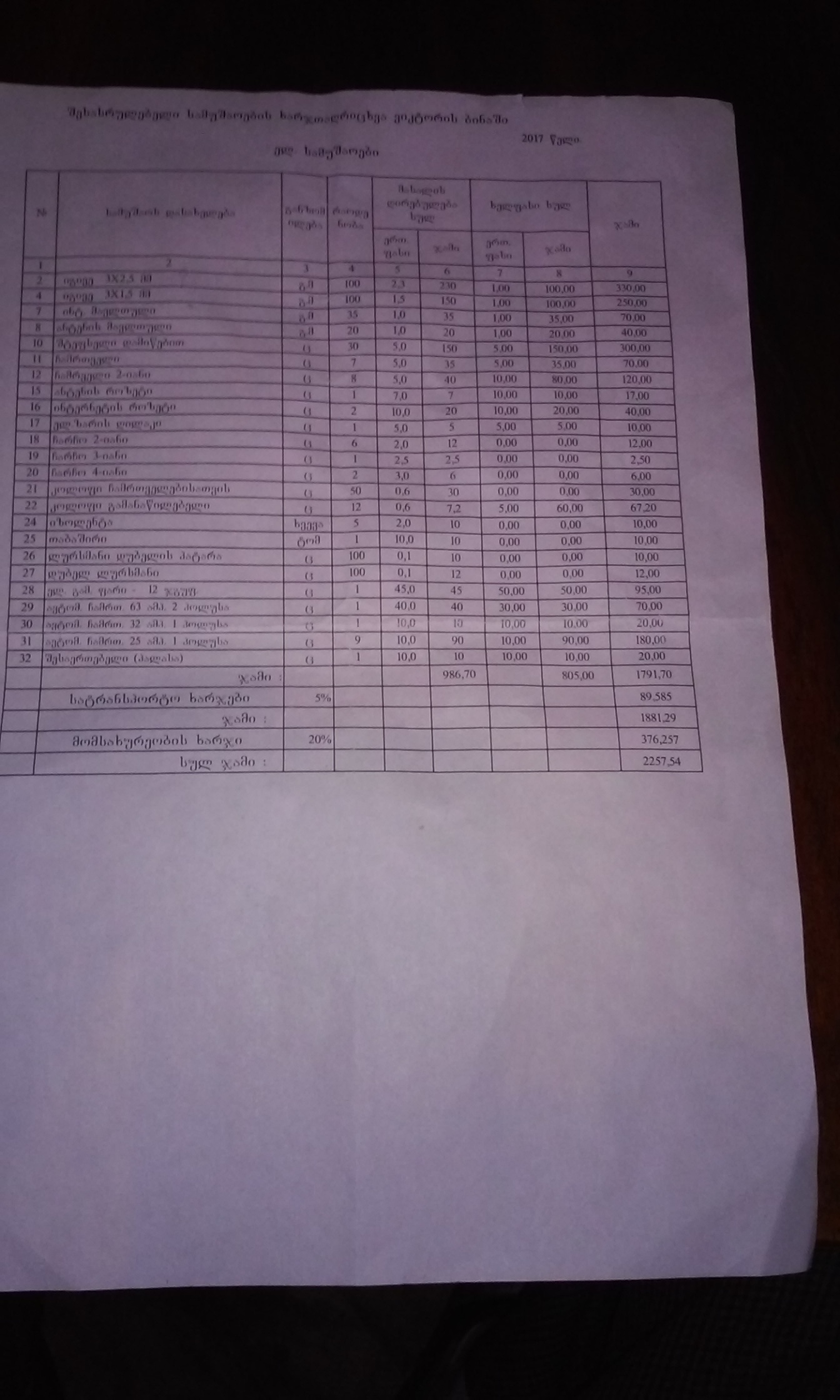 მასალის ფასები სტანდარტულია გააჩნია რომელი ქვეყნის და ფირმისარის დღეს ვიყიდე უკრაინული კაბელი 3x2.5 ზე 2.1 თეთრად. იგივე ზომის კაბელი იყო ჩეხური 2.5 ღირდა ასევე უფრო იაფიანიც იყო 1.8 ად. ხო და კიდე რატო წერს ტრანსპორტირების ფასს % ში ? სულ მთლიანად რაც სიაში წერია უბრალო პატარა სედანი ან ჰეჩბეკი ეყოფა.