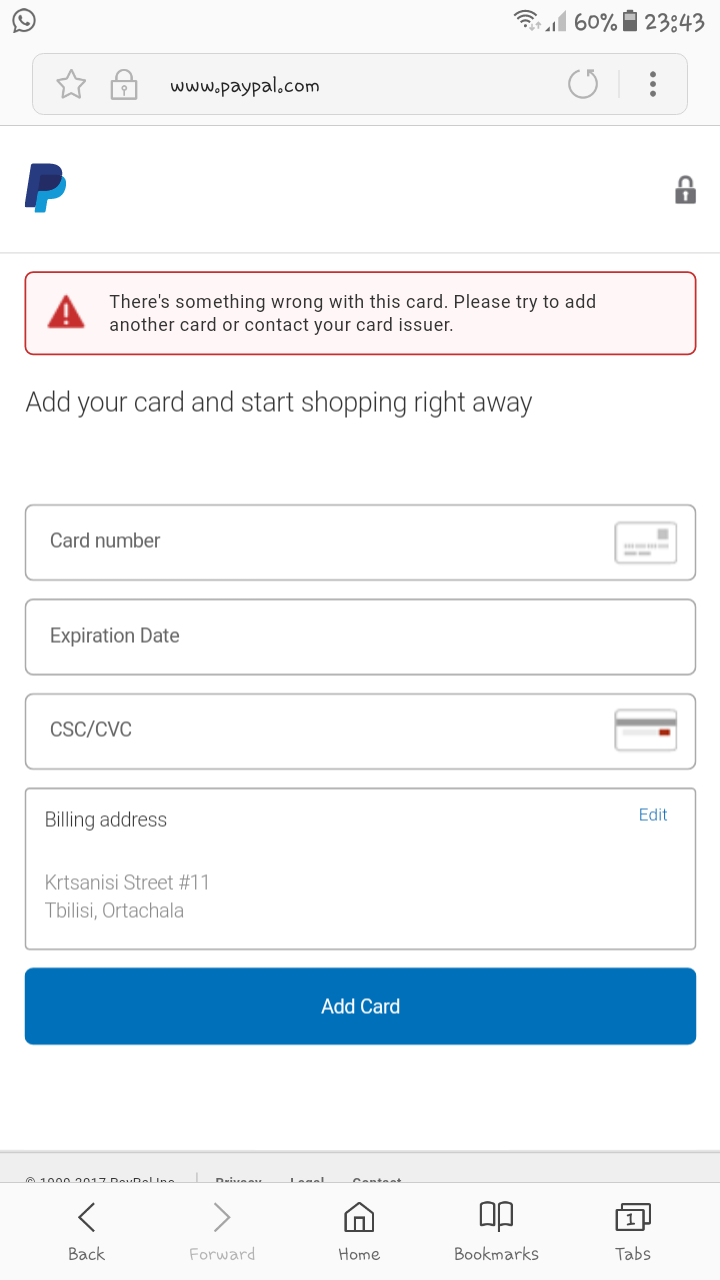 დავრეგისტრირდი და ბარათს ვერ ვაბამ, მინუს 4 ლარი რო მაქ მაგის გამო ვითომ?