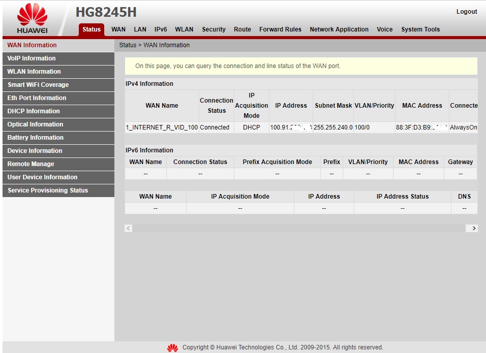 აბა Status > WAN Information სურათი დადე