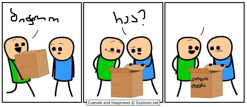 ისე კარგად ხუმრობ, რომ მინდა სახეში აგური ჩაგარტყა და მერე ვუყურო სისხლისგან როგორ დაიცლები. :)