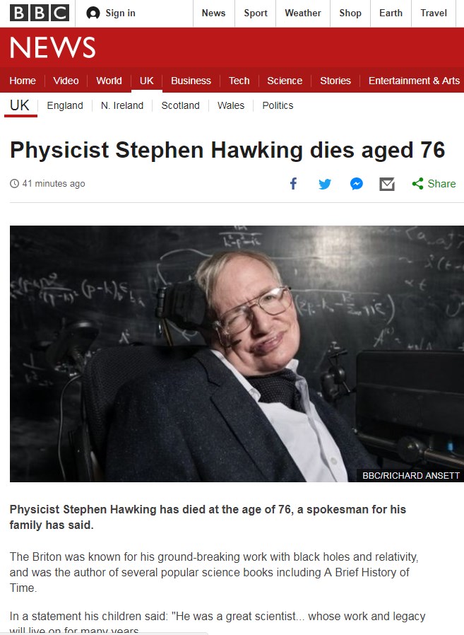 დიდი მეცნიერი - Stephen Hawking, გარდაიცვალა