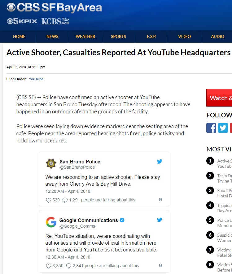 YOUTUBE -ის შტაბ-ბინაში სროლაა, დაჭრილია რამდენიმე ადამიანი