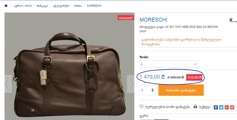 ხოო ძაან ძვირია მაღაზიები. პროსტა ეგ საიტი იმიტოა კაი, რო ზომას რო უთითებ გიჩვენებს რომელ მაღაზიაშია დარჩენილი და ბევრი სიარული აღარ გიწევს.