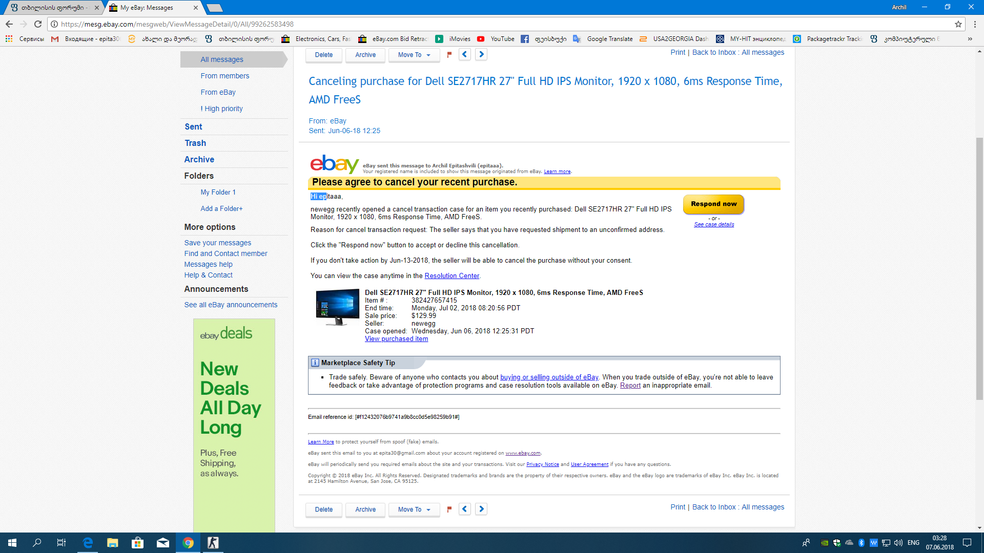 მოკლედ გაუქმდა შეკვეთა ებაიმ დახურა შეკვეთა