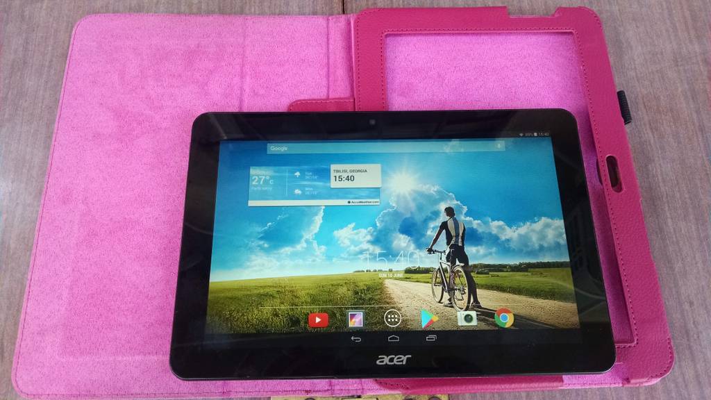 იყიდება acer ის პლანშეტი, არის 10.1 ინჩიანი რაც საკმაოდ კარგი ზომაა, პლანშეტი მუშაობს იდეალურად, არის ძალიან სწრაფი, არ გეგონოთ რომ ჭედავს ან რამე მაგდაგვარი, რო ნახავთ თვითონვე დარწმუნდებით როგორი სწრაფი პლანშეტია, უპრობლემოდ რთავს ძლიერ თამაშებს asphalt 8 და მასეთებს.ელემენტი აქვს 6000 მილიამპერი და 1 დღე მინიმუმ სრული დატვირთვით ძლებს, მოყვება თავისივე ტყავის ჩასადები, რომელიც ცალკე 30 ლარი ღირს. ქონდა ერთი უმნიშვნელო პრობლემა, დამტენის პორტზე, გვერდულად უნდა შეგეერთებინათ ოდნავ რომ დატენილიყო, პატარა ზე ავუწიე პორტი და ეხლა მუშაობს იდეალურად და იტენება ასევე იდეალურად. ამჟამად პლანშეტი არის უპრობლემო და სრულიად მუშა მდგომარეობაში. ფასი 130 ლარი ბოლო. ამ ფასად მეეჭვება ასეთი საკაიფო პლანშეტი ნახოთ. არის საკმაოდ სწრაფი, რო ნახავთ თავად დარწმუნდებით.