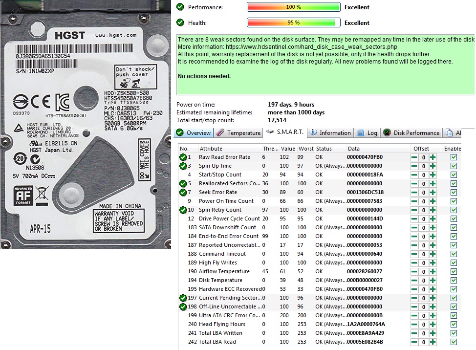 სალამი ფორუმელებს, მოკლედ ეს ვინჩო მაქ ნოუთბუქის, კაპიკი არ დააკლდება 50 ლარია ბოლო ფასი, 40ად მომე და ავიღებ არ განიხილება, დევს ტესტის შედეგიც შესაბამისად ზედმეტი კითხვების გარეშე, ზუსტი მოდელია hgst hts545050a7e680 500GB, Health95% ნამუშევარი აქვს 197 დღე სატა 6.0–ია !!! თუ არადა სულ არ გავყიდი მიყენია ჩემ პერსონალურში და იყოს დამატებით ვინჩესტერად არ მიშლის ხელს