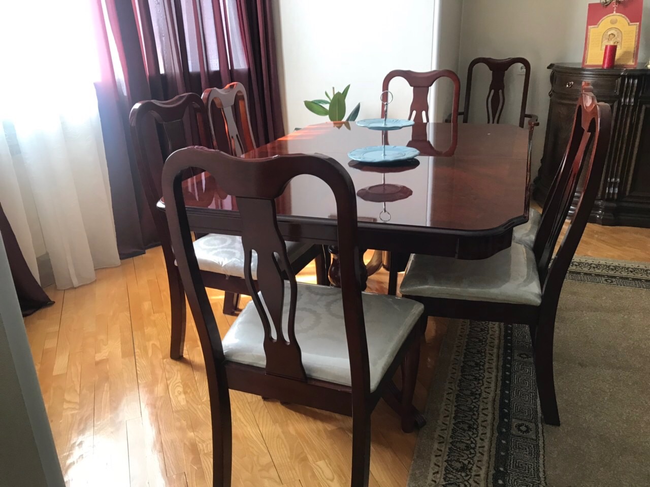 სასწრაფოდ იყიდება, პალიროვკიანი გასაშლელი მაგიდა 14 კაციანი, 6 სკამით და 2 სავარძლით. სკამები და სავარძლები შეფუთულია, საუკეთესო მდგომარეობაში. საკონტაქტო: ნანა 599 717 595