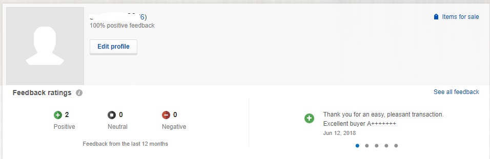 აქვს 6 Feedback და 100%. დარეგისტრირებულია 2016 წელს
