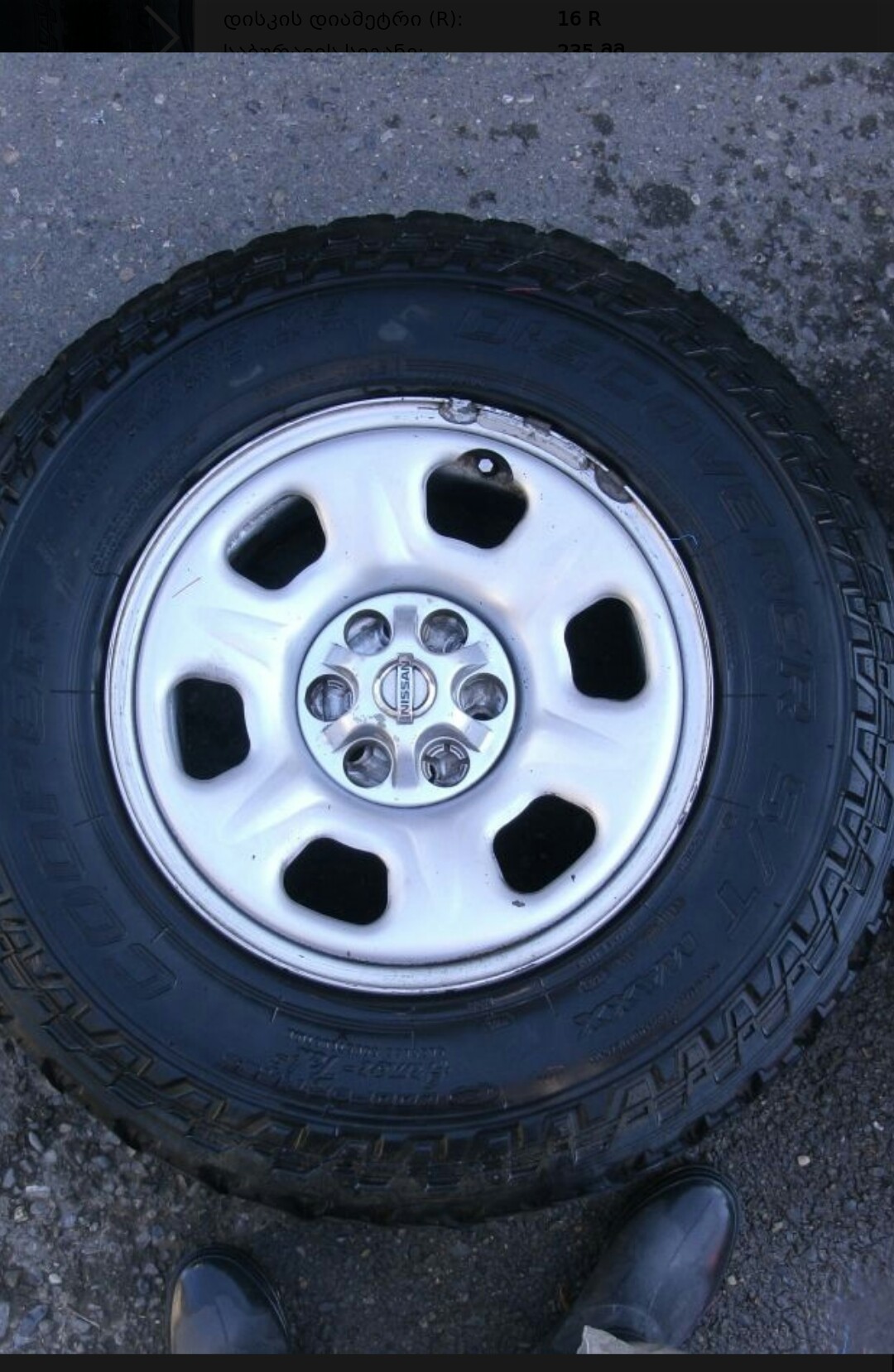 gavcvli 16ian rkinis diskebs 6x114.3 gadaxvretit, isev 16ian rkinis diskebshi 6x139.7 gadaxvretit rom iyos da movayoleb 4 cal 15ian disks 6x 139.7 gadaxvretit მიდის 2006იან ნისან პატფაინდერზე