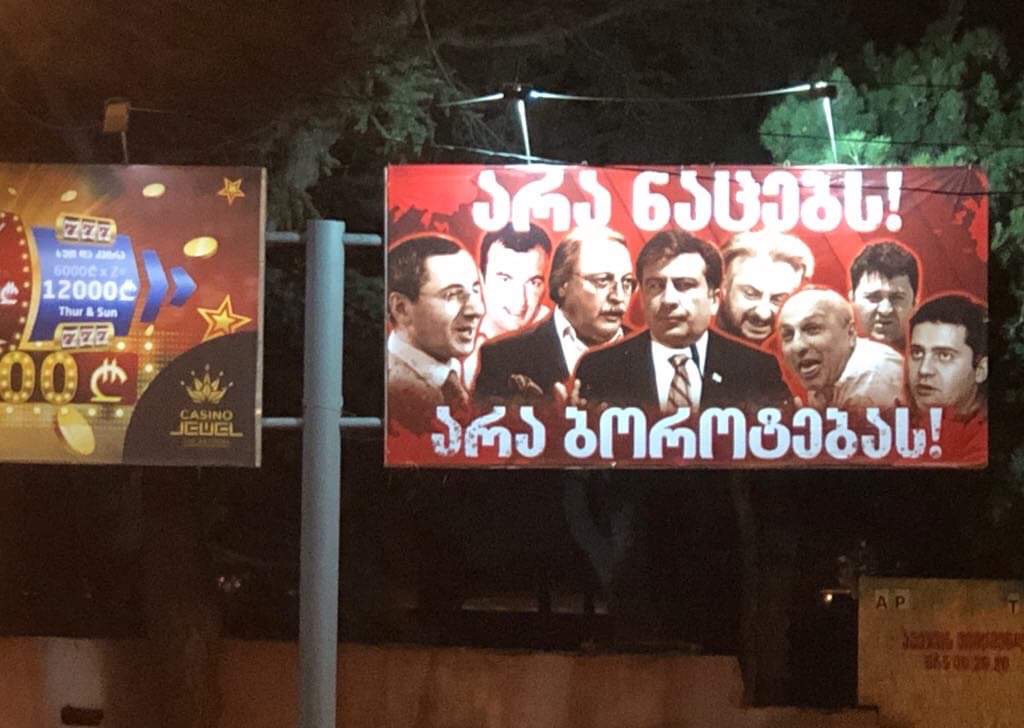 როგორც ირკვევა, ბანერების "არა ნაცებს, არა ბოროტებას", რომელზეც "ნაციონალური მოძრაობის" ლიდერები არიან გამოსახული, დამკვეთი წინანდლის ღვინის ქარხნის მფლობელი ბიზნესმენი, ალექსანდრე მეგუთნიშვილია.