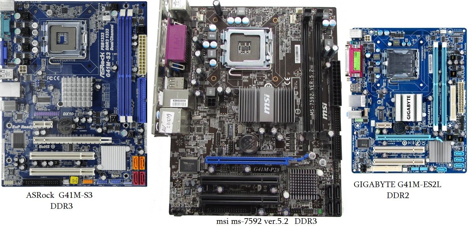 გამარჯობათ, იყიდება შემდეგი დედაპლატები Asrock G41M-S3 DDR3-ზე, MSI MS-7592 VER 5.2 DDR3-ზე , Gigabyte GA-G41M-ES2L DDR2-ზე