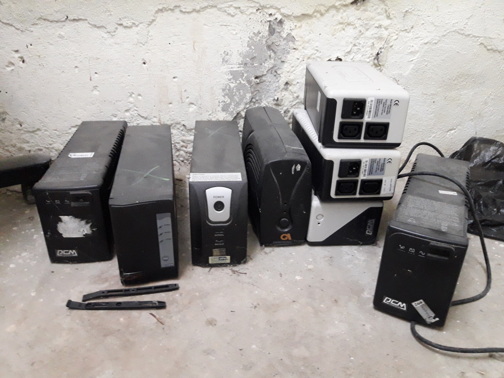 მაქვს 7 ცალი, საოფისე. გამოსაცვლელი აქვს აკუმულატორები. მაქსიმუმ 20 ლარებად გაგატანთ. 7 ცალს ვინც აიღებს 100 ლარად მივცემ. UPS-ები იმყოფება ნაძალადევის მეტროსთან ახლოს.