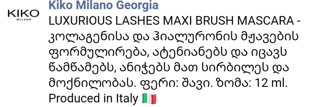 იყიდება Kiko Milano ტუში იტალიიდან. ფასი: 30 ლარი 555417262