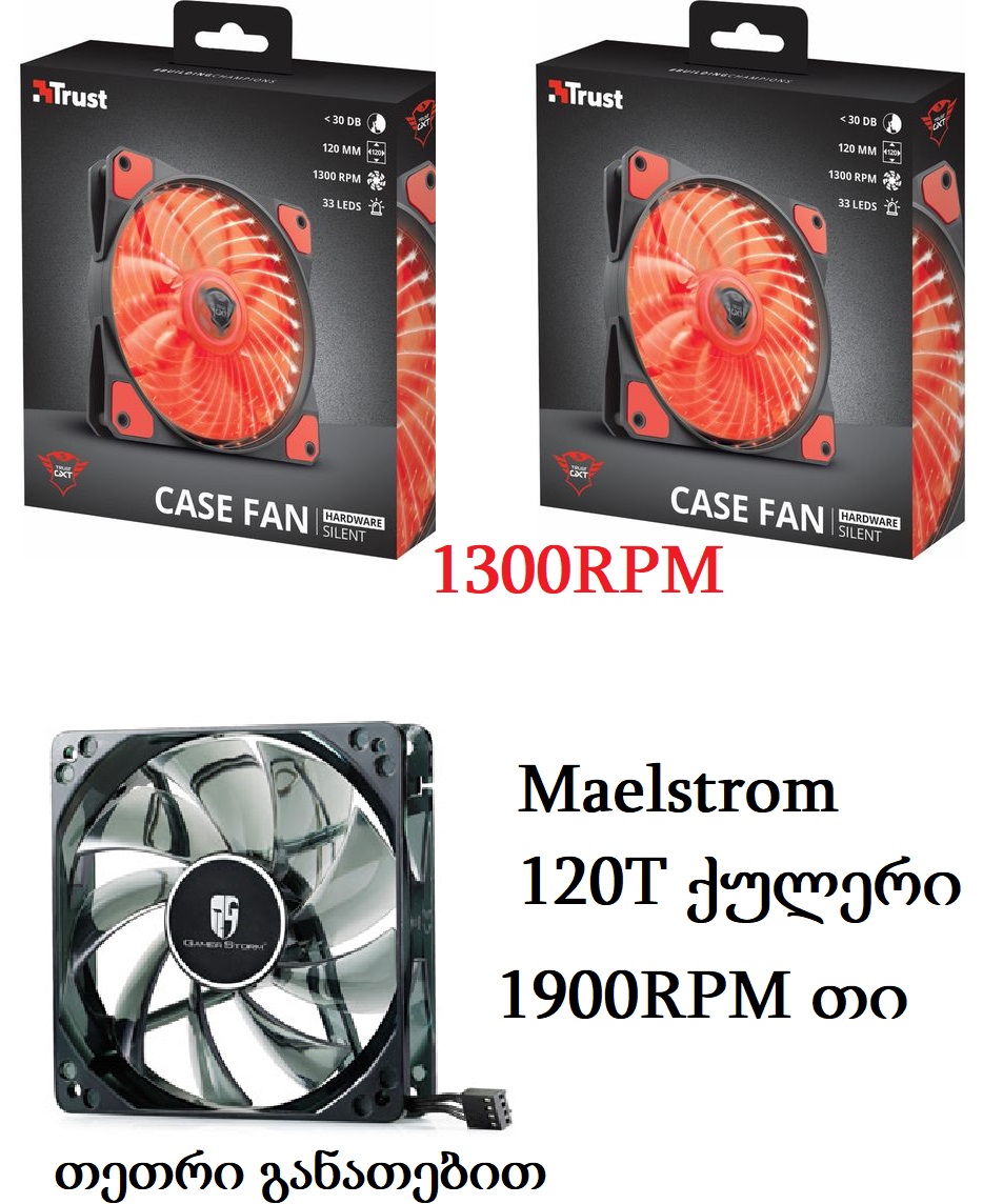 ან გავცვლი ჩემ ქულერებს , რამდენი დავამატო დამიწერეთ მაქვს 2 ცალი თავისი ყუთით და ერთიც თეთრი განათებით Maelstrom ის 1900rpm
