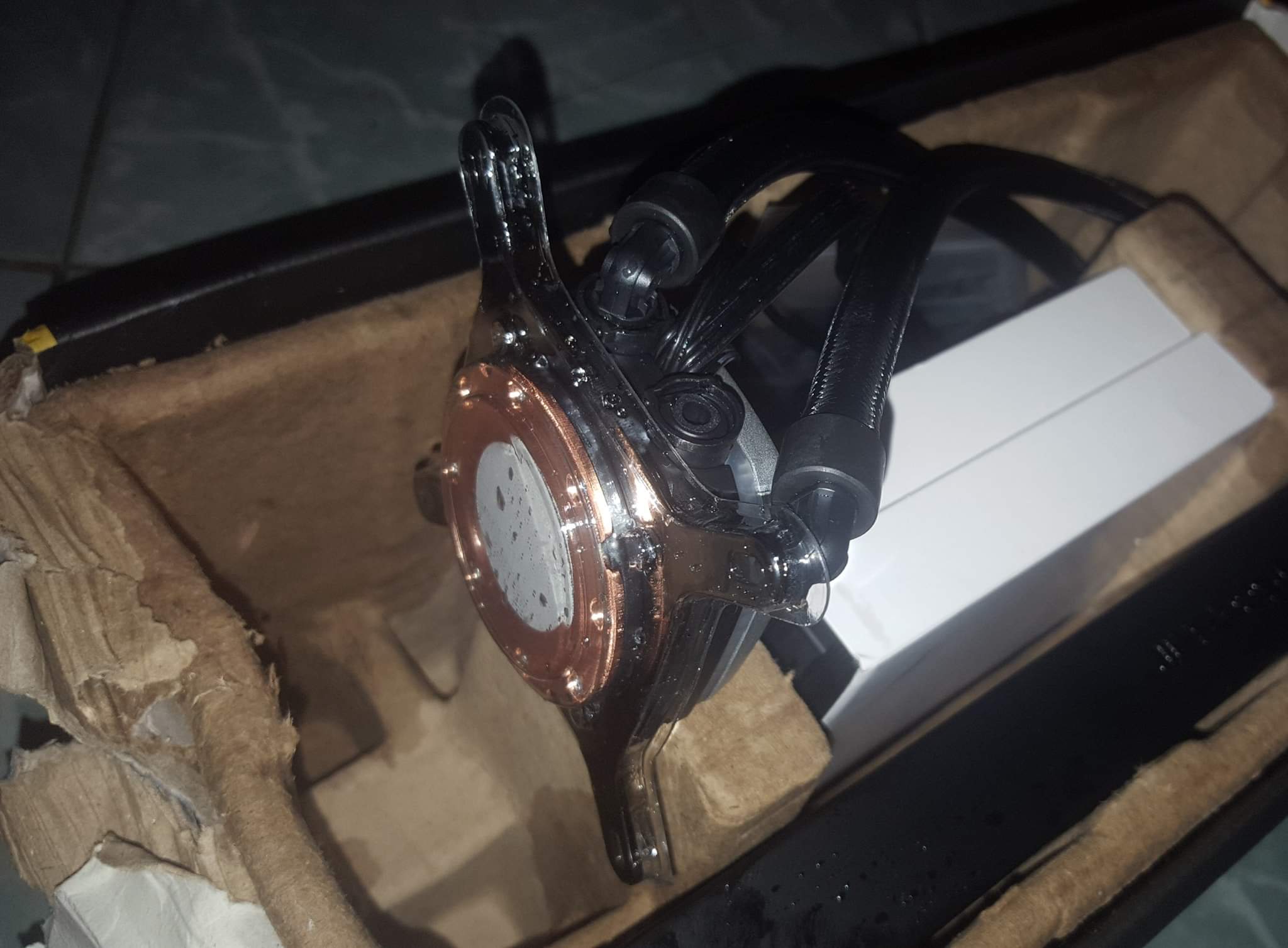 ყუთია ბიჭო გარედან დაზიანებული კაკრაზ პომპის ადგილას და მაგ დროს გაძვრა ალბათ. თორე სელერმა მთლად ახალი გამოგზავნა სურათებიც მანახა გამოგზავნამდე. ამ ნაბოზრებმა დააზიანეს გზაში ან საბაჟოზე.