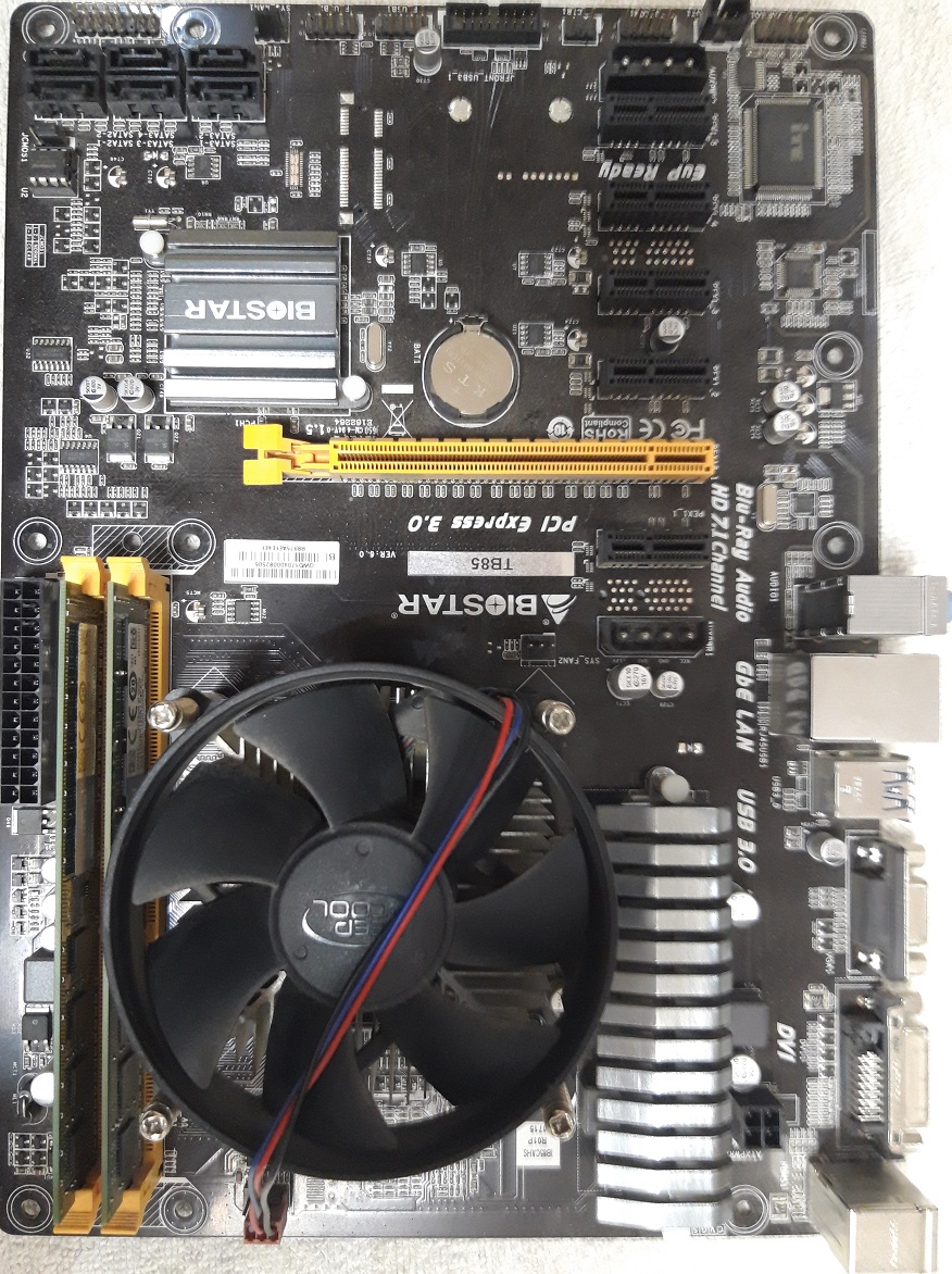 დედა დაფა BIOSTAR TB85 + 8GB RAM + პენტიუმის პროცესორი + ქულერი - 200 ლარი