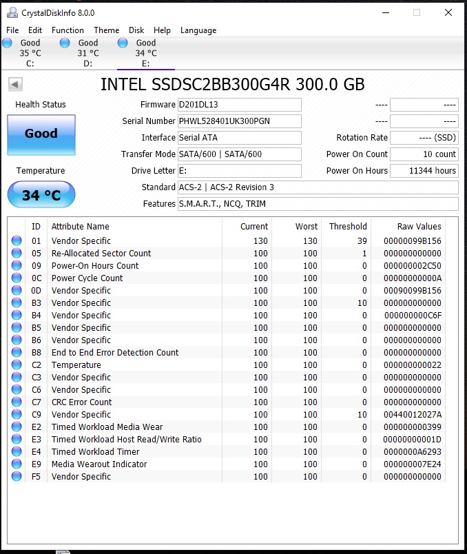 იყიდება Intel SSD DC S3500 300GB, 100% ჯანმრთელი და ძალიან იაფად