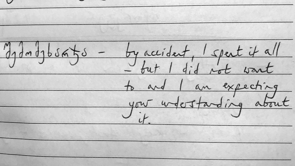 ასე რომ, ინგლისელი რომ ყოფილიყავით, ფული გაუმიზნავად დაგეხარჯათ და ამის შესახებ ვინმესთვის ახსნა დაგჭირვებოდათ, ეს ისეთი მარტივი არ იქნებოდა, როგორც ქართულად.