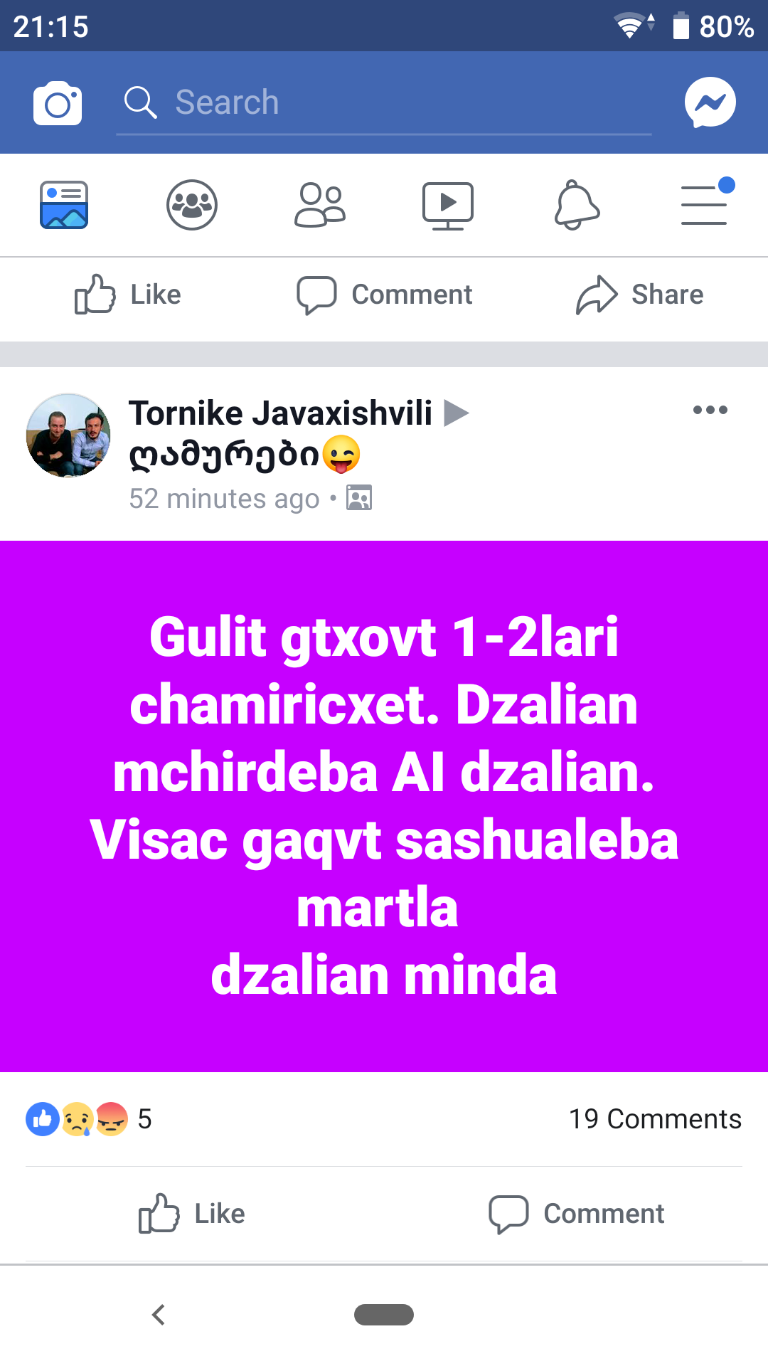 გუშინაც ჰქონდა პოსტი. ან სხვაა ვინმე