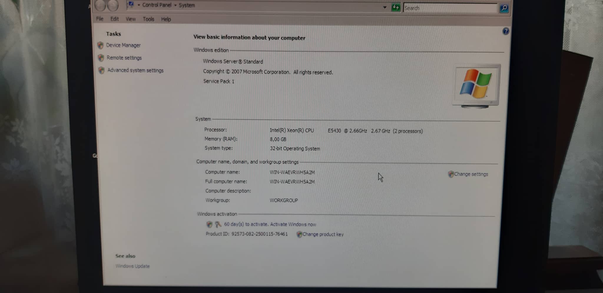 პროცესორი: Intel Xeon CPU E5430 (2 პროცესორით).