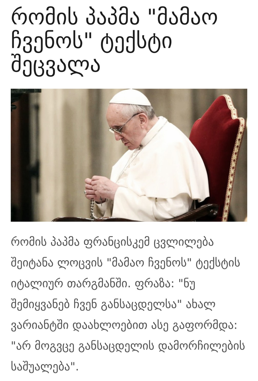 რომის პაპმა "მამაო ჩვენოს" ტექსტი შეცვალა