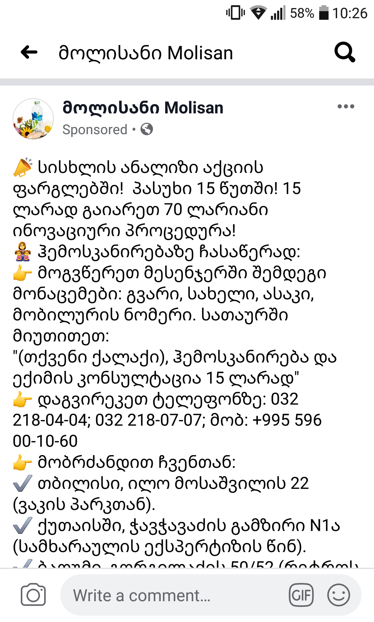 17 ლარი ღირს სისხლის საერთო ანალიზი