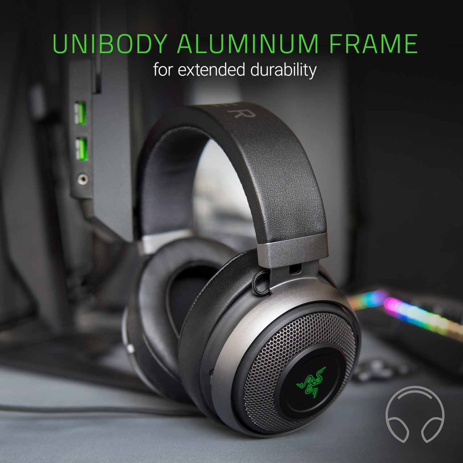 Razer Kraken 7.1 V2 Gunmetal Edition - Noise Isolating Surround Sound Digital Gaming Over-Ear RGB Headset with Mic - Oval Ear Cushions