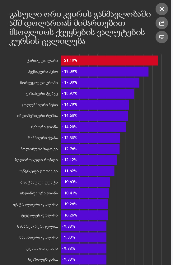 მსოფლიოში ყველაზე მეტად ლარი გაუფასურდა
