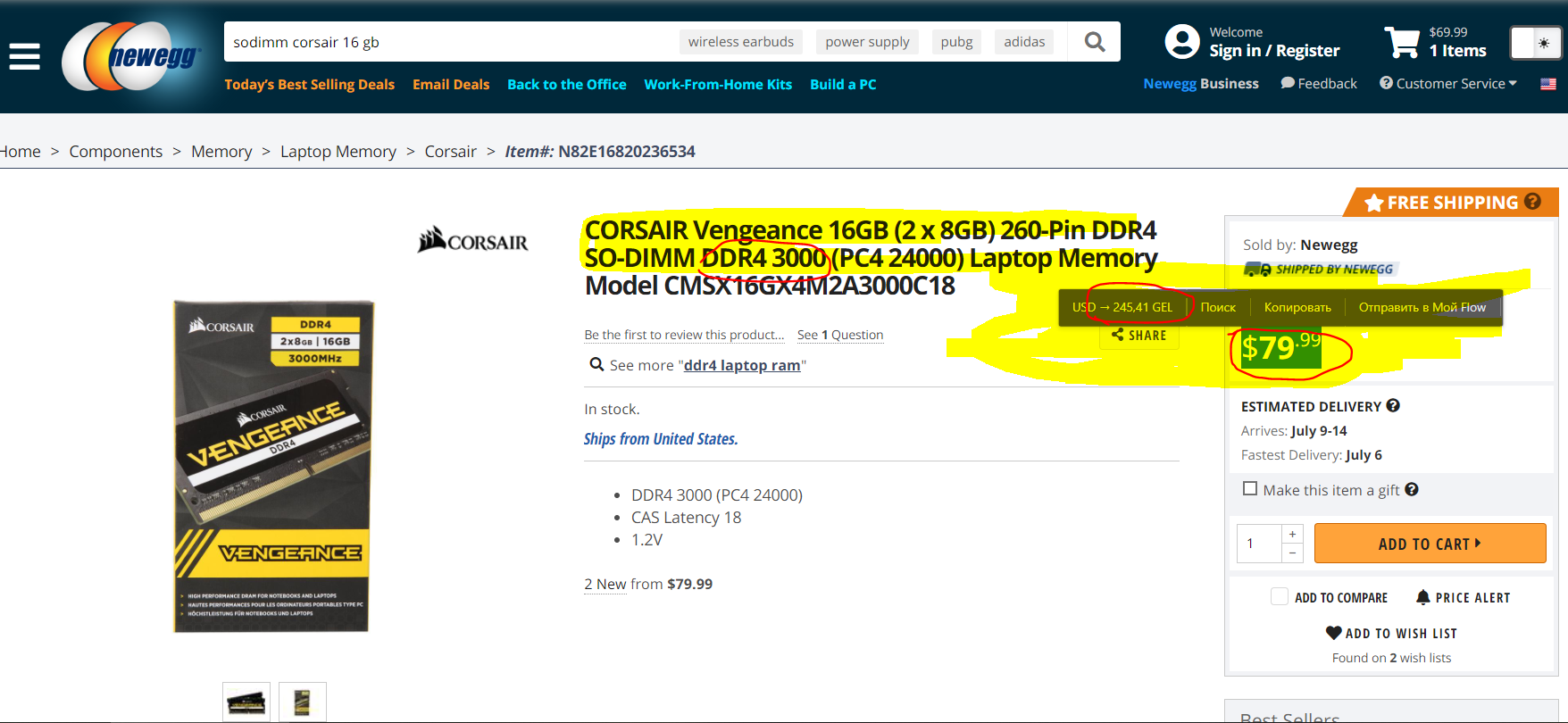 i5-6400 - 269 ლ █ Corsair 16 gb 3000 MHz - 219 ლ