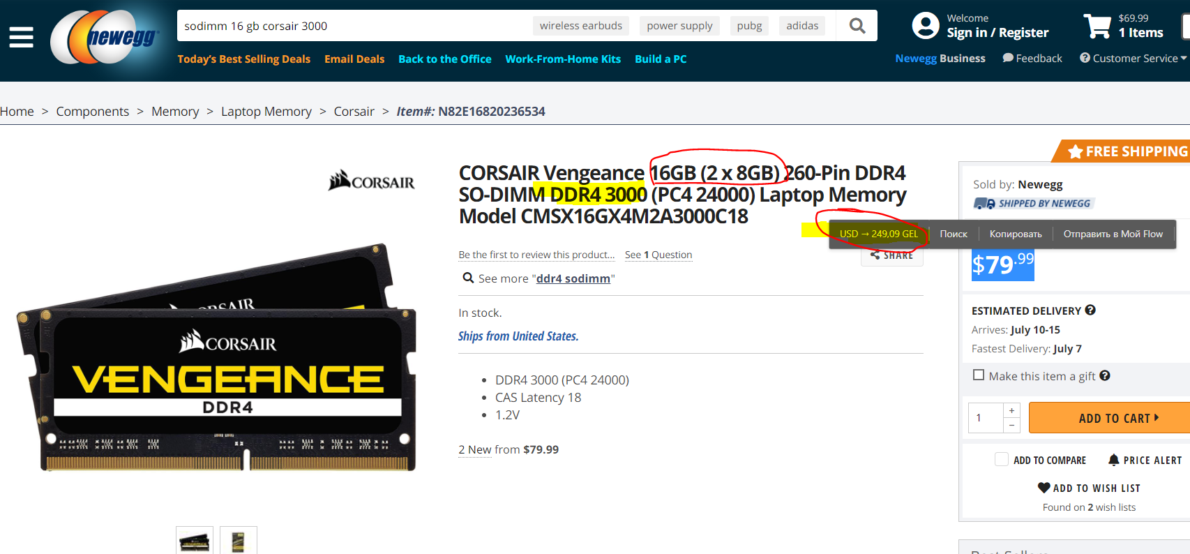 იყიდება CORSAIR SODIMM 2X8GB 3000MHZ!