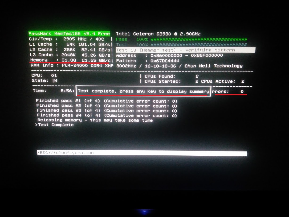 გატარებულია Memtest86 ზე 9 საათიანი ტესტი სქრინი შეგიძლიათ იხილოთ სპოილერში