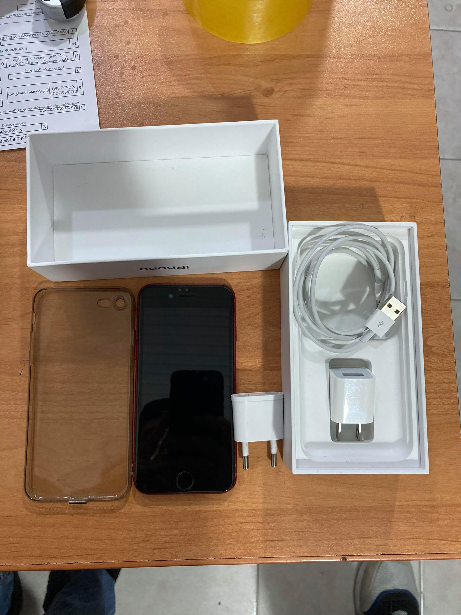 არის იდეალურ მდგომარეობაში, ერთადერთ ადგილას აქვს საღებავი აცლილი ფოტოშიც ჩანს, ეკრანზე აქვს დაკრული ბრონი მოყვება ორიგინალი დამტენი, იუესბი კაბელი გამჭირვალე სილიკონის ქეისი და ყუთი ოღონდ SE 2020 ის თავის არაა