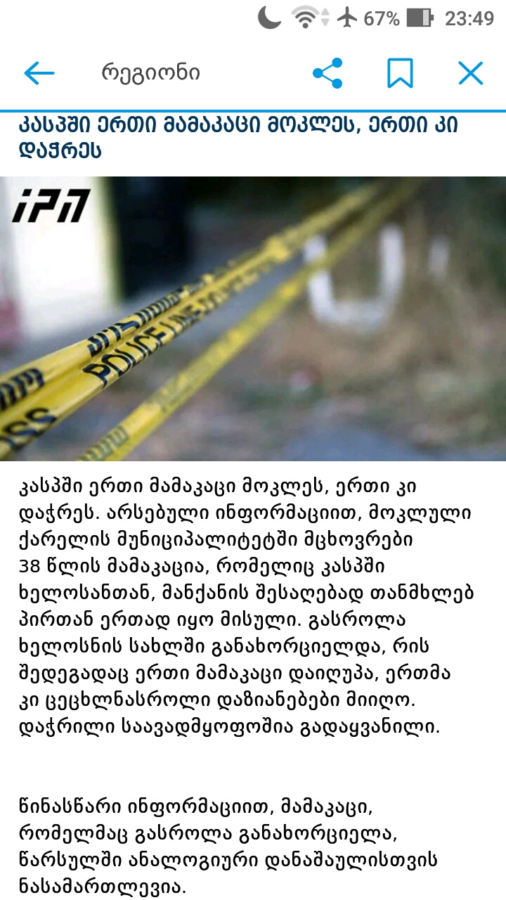 როგორც ერთმა კაცმა თქვა, ტელევიზიები ახდენენ მძაფრი ნიუსების აფიშირებას, თორემ სინამდვილეში დანაშაული არ გაზრდილაო. როგორც ირკვევა, თურმე მხოლოდ ტელევიზიებით არ ვრცელდება ყოველდღიური შემაშფოთებელი ინფორმაცია მკვლელობების, ფატალური ავარიების თუ სხვა მძიმე დანაშაულობების შესახებ.