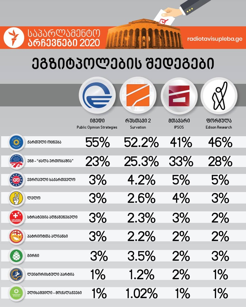 დაიდო უკვე ეგზიტპოლები (იხ. ქვემოთ ფოტოზე)