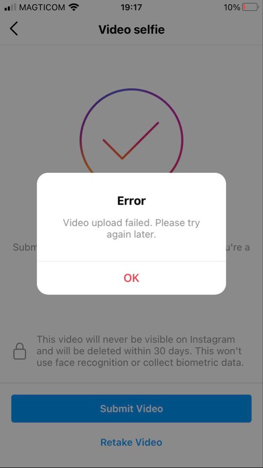 მთხოვს ფეის ვერიფიკაციას და ვიდეოს არ მატვირთვინებს ტელეფონიდან და კომპიუტერიდანაც ვცადე და ესეთი მდგომარეობაა და იქნებ მირჩიოთ რამე