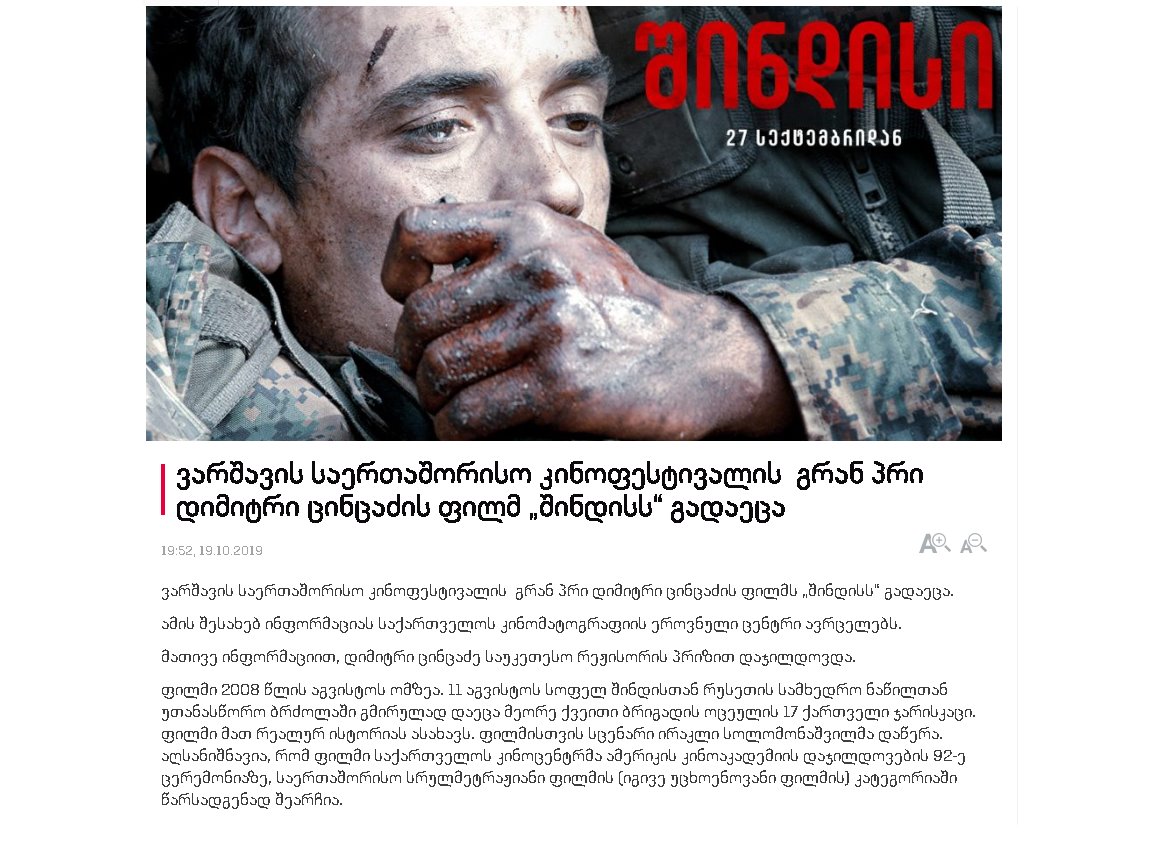 ფილმი, შინდისის გმირებზე, გადაღებულია რეალურ მოვლენებზე