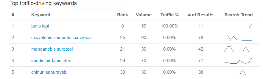 მართალია, არის დარანკული ტოპ ქივორდებზე, არატემატურზე მაგრამ მაინც ტოპია