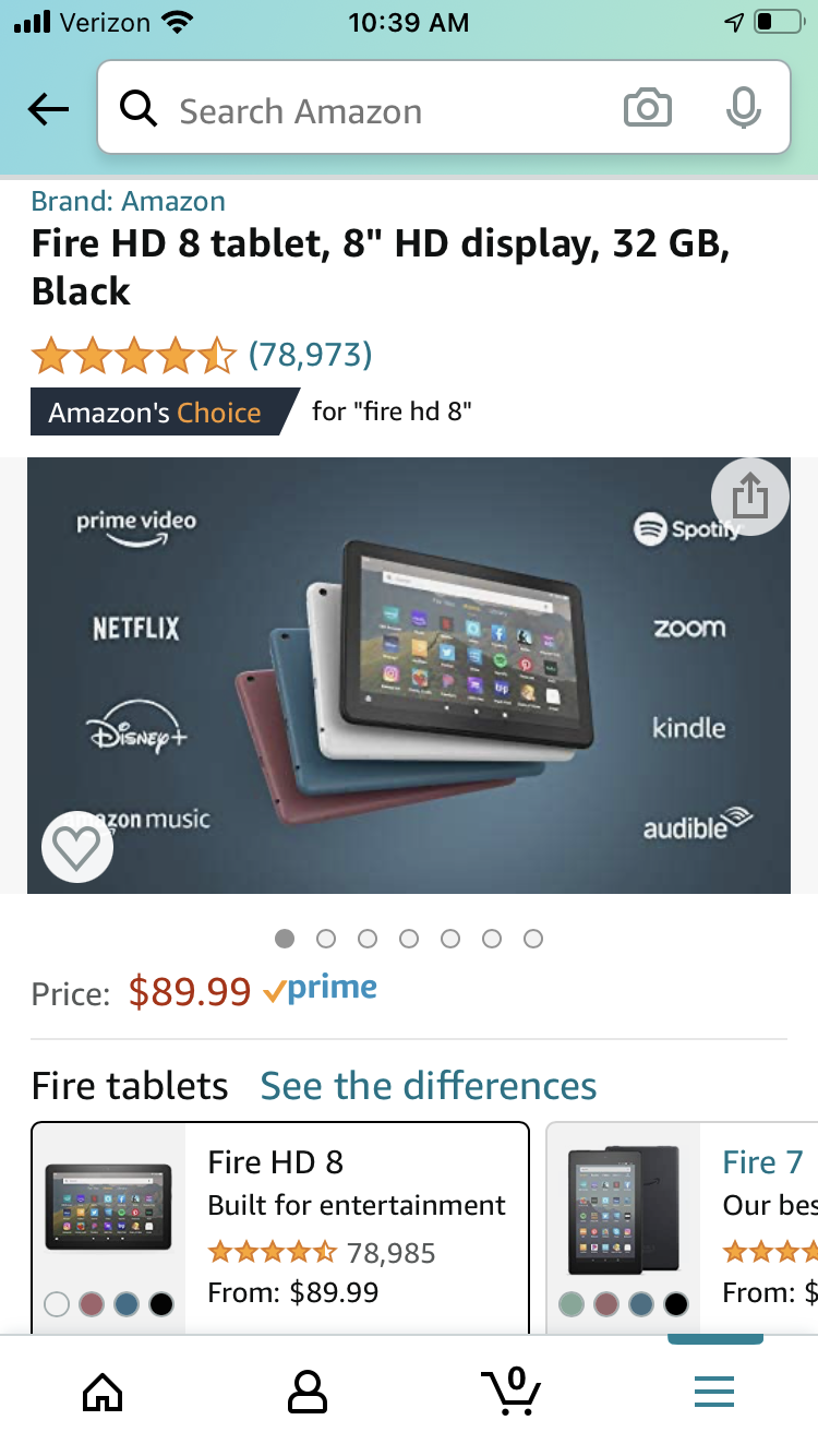 იყიდება ახალი შავი Kindle Fire HD 8