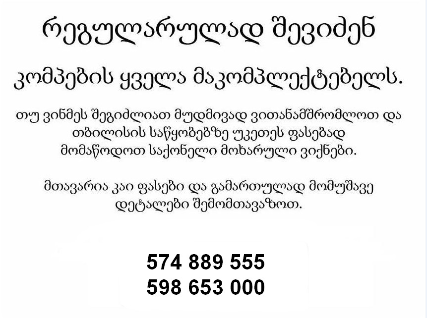 თემას დავხურავ, მომწერეთ პმში ან დამირეკეთ.